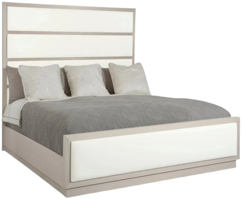 With its contemporary appeal and attention to craftsmanship, Axiom is a transitional furniture collection that refuses to play by the rules. The Axiom upholstered panel bed offers clean lines and a sleek form, yet the feel remains warm and inviting. Giving the piece a distinctly modern slant, the high headboard features four upholstered, inset horizontal panels.Read More