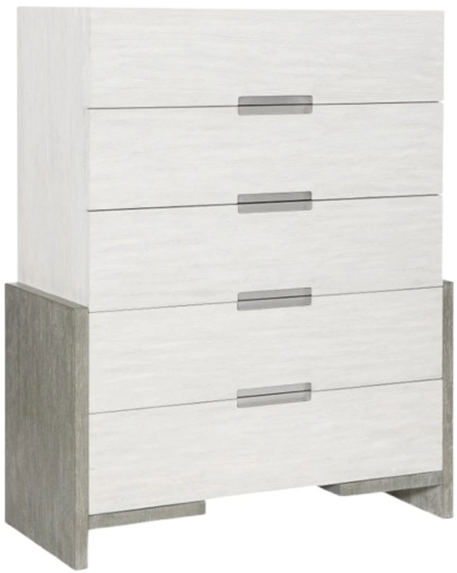 Foundations is a new, refined expression of modern rustic, defined by a minimalist style and relaxed comfort. The Foundations tall drawer chest features a two-tone theme and substantial, thick-cut planes. Five drawers, finished in a muted oyster, contrast with its darker wood frame. This handsome piece offers an instant upgrade to any bedroom.Read More