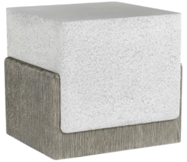 The Monolith side table showcases a bold design with a textured faux stone block nested in a wooden base. The top offers a smooth surface while the woodgrain is highlighted in a puma finish on the base as it curves up to cradle two sides. It's a modern style with an organic inspiration.Read More
