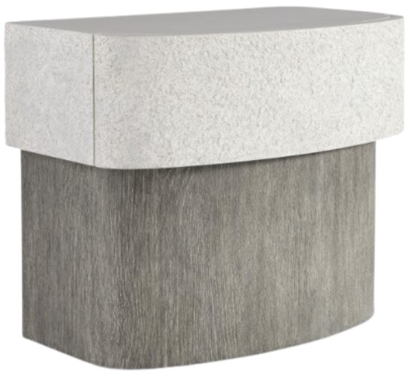 The Monolith nightstand takes a substantial form and softens the edges and corners for an organic aesthetic. Texture is spotlighted in the top's faux stone sides in millstone finish, as well as the wirebrushed oak base in puma finish. One soft-close drawer is opened with a hidden fingerpull.Read More