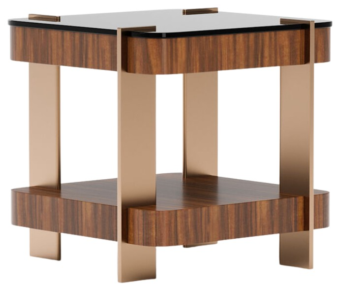 Delicate yet daring, the Altura Glass Side Table wraps Smoked Walnut around a Smoked Bronze glass top, intersected by a Champagne Gold blade leg. A versatile luxury side table that layers quiet sophistication into living rooms and bedrooms alike.Read More