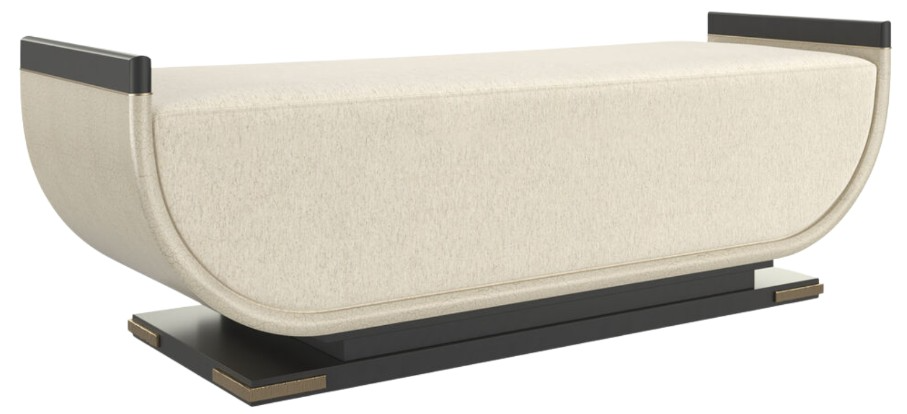 With a classic form inspired by an ancient Greek ceremonial vessel, this end of bed bench brings an exquisite mix of detail and materiality. Features a plush upholstered front and seat, embraced by a curved poplar frame in an Ivory Craze crackle finish.Read More