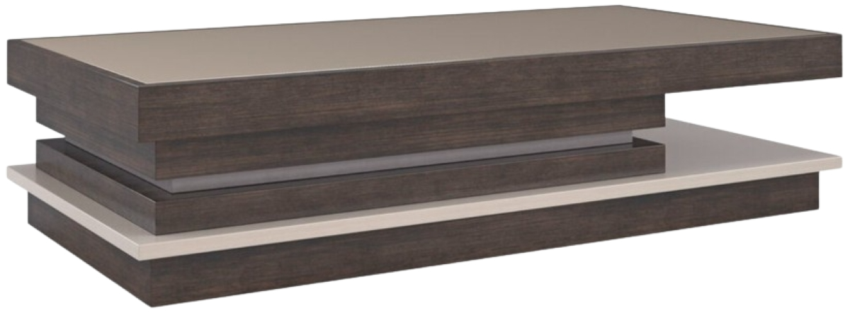 Balancing beauty and functionality, this tiered cocktail table builds on basic principles of design and architecture. Stacked slabs in a mix of materials and finishes lend structure and integrity, with alluring details like a frosted bronze glass top and metal trim in Smoked Stainless Steel paint.Read More