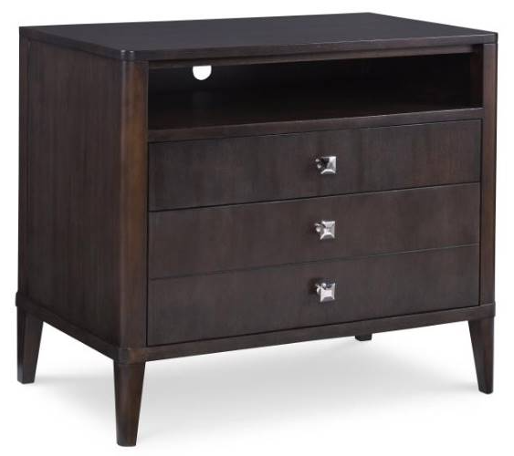 Bring this nightstand in your bedroom design from the Aria collection. It has two soft-close drawers with polished nickel finish hardware, an open shelf with wire access, and it is made out of walnut veneers and beech solids.Read More