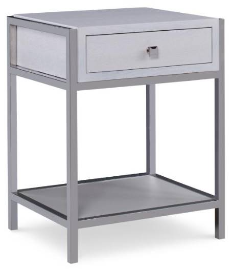 Bring this nightstand in your bedroom design from the Aria collection. It has a single soft-close drawer in an oxford white finish, an open shelf, and a polished stainless steel finish frame.Read More