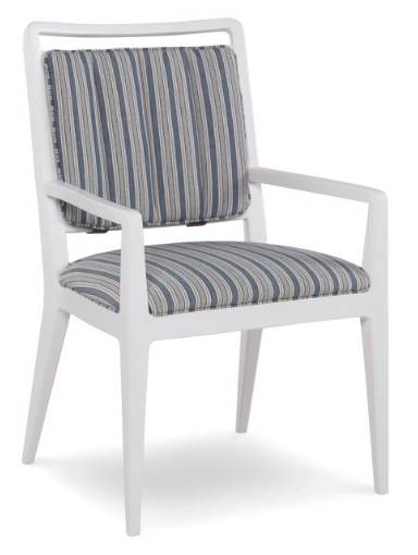 Bring this armchair to your dining design from the Bowery Place series. It has an upholstered seat, a full upholstered back, a leather strap, and it is made out of oak solids.Read More