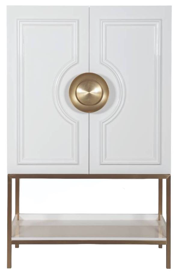 With an overscale, traditional moulding profile the Cadence Bar Cabinet feels nostalgic, and yet rendered in high gloss white lacquer with a beautiful, large, concave disc hardware in antique brass, it is the epitome of modern glamour.Read More
