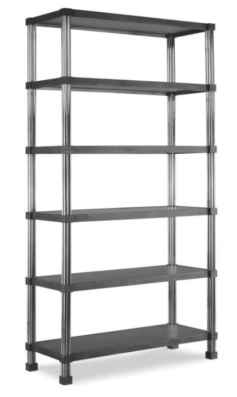 Polished chrome with bronze finish trim frame and metal shelves