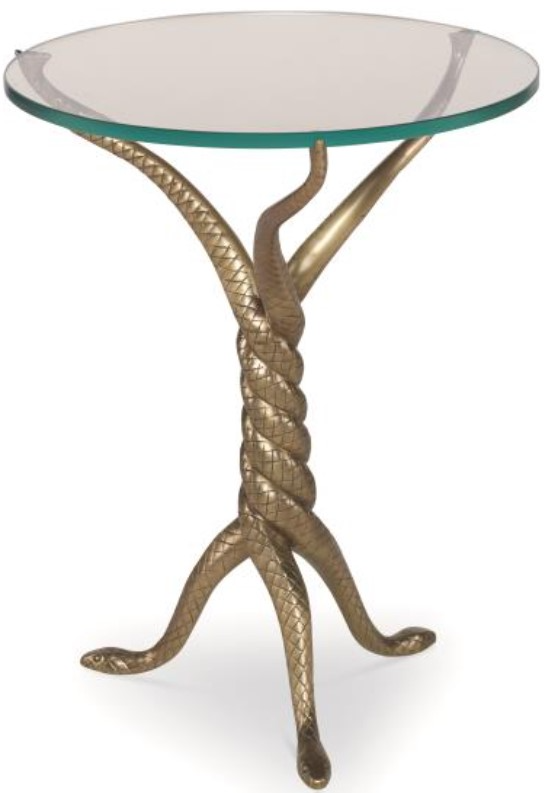 Stylish brass tripod drinks table – using three twisted serpents as the base – with their tales supporting the glass top. They are playful, chic and clever and add so much personality in a small footprint (or investment!).Read More