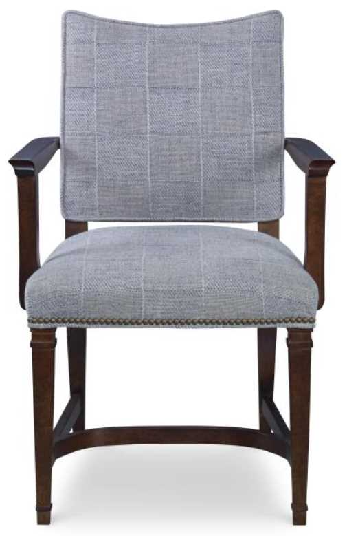 Timeless in design, this classic dining chair offers both comfort and style that compliments any dining table with upholstered seat and back, and exposed wood frame and arms with applied banding details on legs for scale and interest, and a pretty arched stretcher for comfort and function.Read More