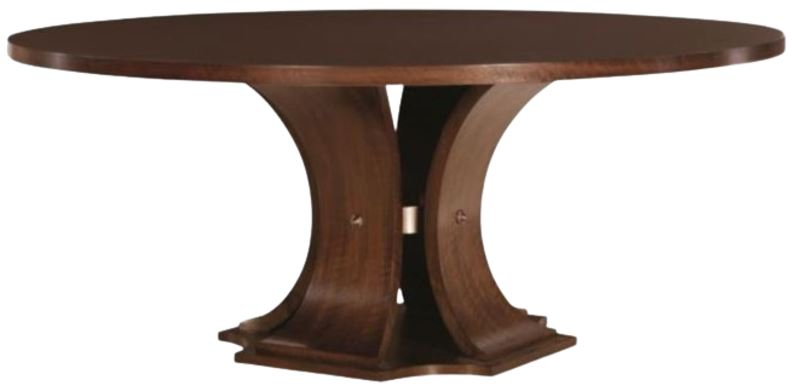 Crafted from walnut and poplar solids and figured walnut veneer, the Sanford Round Dining Table features a beautiful base with four flaring curved supports resting on a clipped corner platform and joined with pewter ring that fastens with decorative pewter cap.Read More