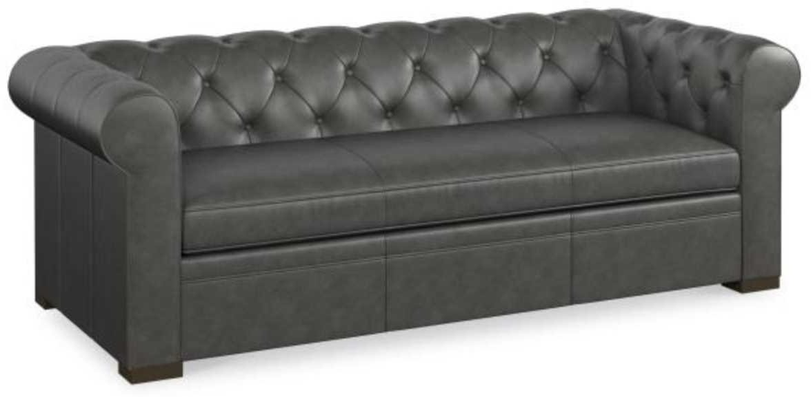 Elevate your living room with this Classic Chesterfield Sofa from Century®. Shown in a gunmetal color fabric, this sofa is cozy that will be perfect in your preferred room. Make a bold statement by incorporating this furniture into your home.Read More