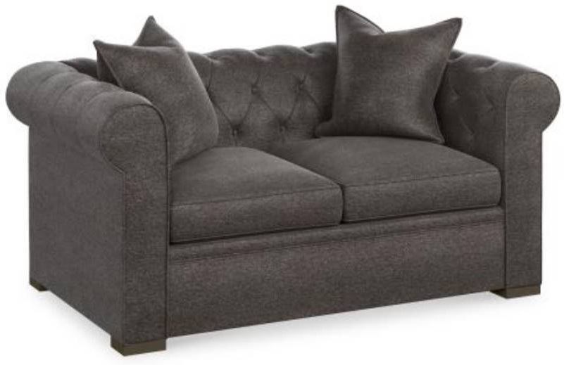 This loveseat from Century Home Elegance Classic features tufted back and loose seat with spring down firm fill with two throw pillows included. Add a unique and eye-catching style to your home by incorporating this loveseat into your living space.Read More