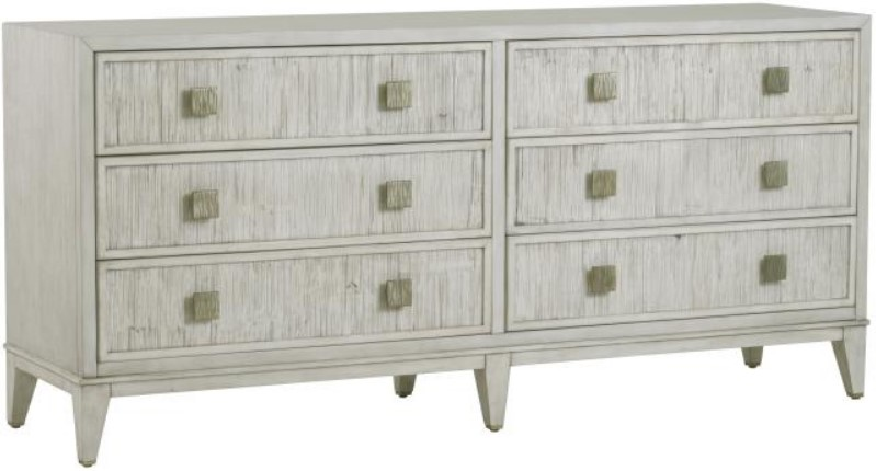 With transitional clean lines, the Carlyle is crafted from Beech solids wrapped in quartered Oak veneers and features Crushed Bamboo drawer fronts with tapered legs. Textured square metal pulls, two on each of the six drawers, all with soft-close drawer mechanisms.Read More