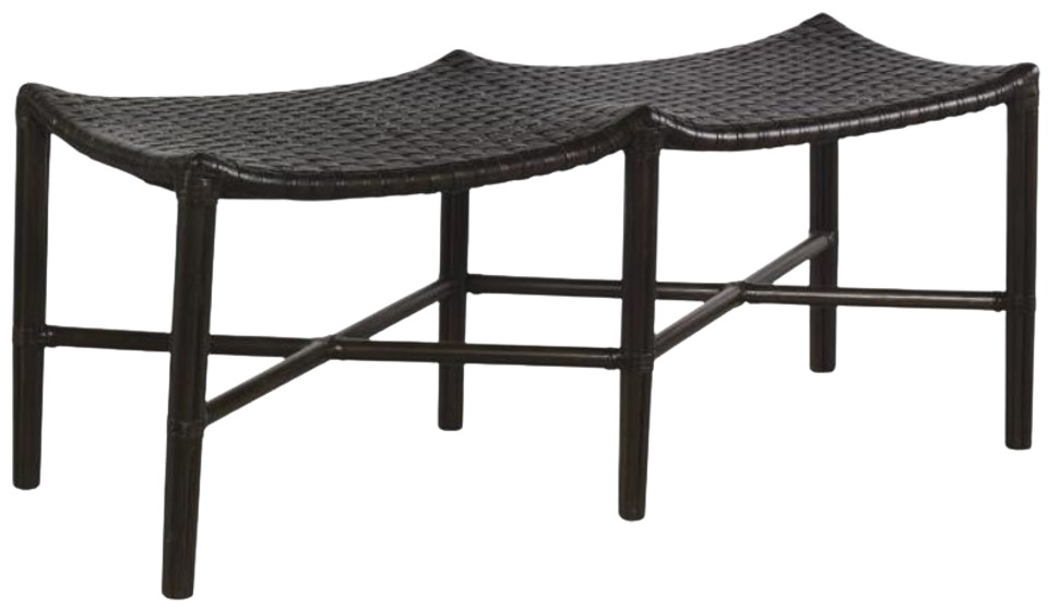 This Curate swing bench is crafted of rattan with leather bindings. The double saddle seat design has "X" stretchers underneath each seat for support. A clean and modern silhouette, this bench is easy to tuck at the foot of a bed, in a hallway or foyer or beside a fireplace.Read More