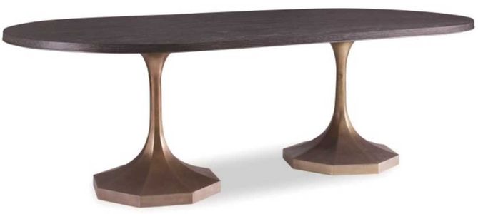 A perfect pairing of grace and simplicity, our Blake double pedestal dining table elevates the concept of a modern pedestal table by adding a gracious, sweeping carved detail to the metal base, and embellishing an otherwise, simple lozenge-shaped wood top.Read More