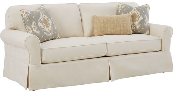 Tradition and Today blend together seamlessly in this classic sofa featuring a true, removable slipcover that fits snugly, with Velcro attachments in key areas. It can be ordered in any of our fabrics (including a few that are machine washable!) It features loose box border backs and plushRead More