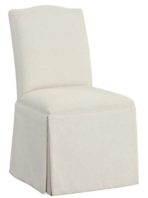 Elevate your dining room setup with this Camel Back Dining Skirted Side Chair from Fairfield. This armless chair shown in tobacco finish and available in variety of upholstery, this beautifully crafted chair will elevate the look of your space.Read More