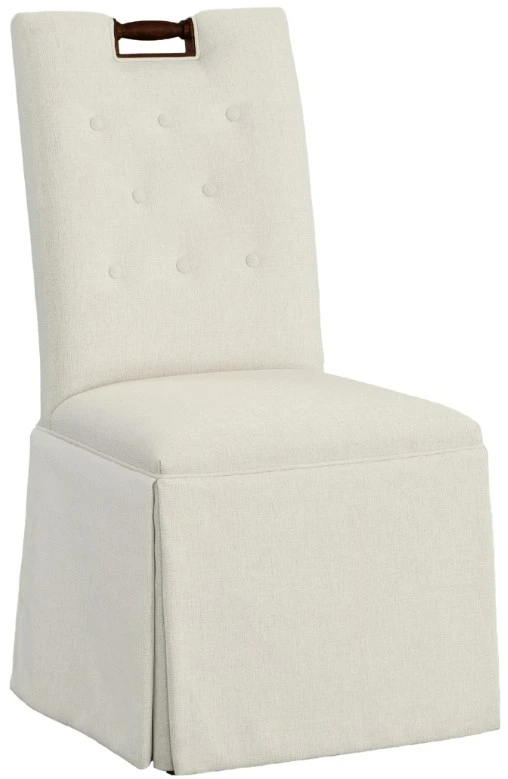 Elevate your dining experience with the Entree Dining Pull Tall Back Skirted Dining Chair. Crafted from durable Rubberwood solids, this chair features a tight seat and back construction, complemented by sinuous spring seating for added comfort. The tall back, adorned with button detailing, pairs beautifully with the Tobacco-finished legs and elegant skirt.Read More