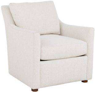 The Teddi Lounge Chair is a stylish and comfortable piece with a casual, modern design. It features a loose, plush back cushion and a deep seat, all upholstered in a light, neutral fabric. The chair is supported by four subtle, tapered wooden legs.Read More