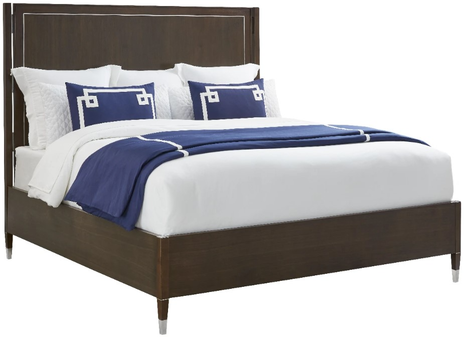 The Farley Bed features rich walnut wood in a Sheer Dove gray finish, highlighted by polished nickel accents. Vertical panels showcase the natural grain, while elegant trim and ferrule feet add a refined touch. Its clean lines and warm tones suit a variety of design styles.Read More