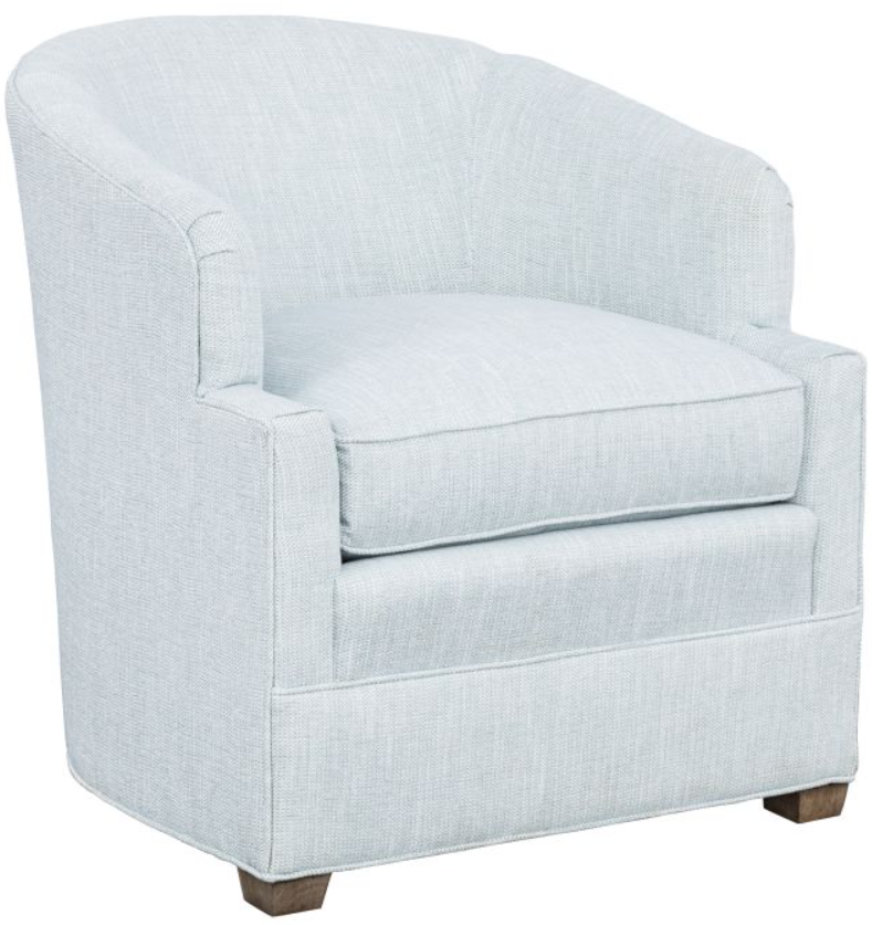 Presenting the Manning lounge chair from Fairfield, this barrel back chair has contemporary styling. The arms have a notched back shape tailored with welting. The front seat platform has a welted border and the low exposed wood feet are wedge-shaped.Read More