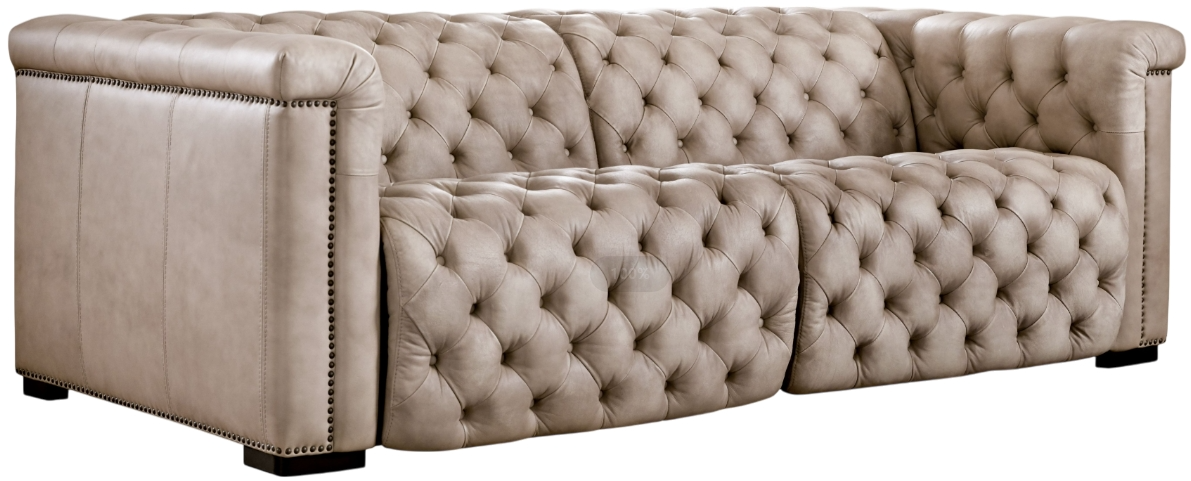 The individually operated headrests invite you to lean back and relax your upper body while watching TV, reading or conversing, and the seating units transform into recliners with a smooth power control button, offering exceptional comfort. Savion blends classic elegance with modern flair, combining traditional button-tufted tailoring with a sleek profile back. The hand-wiped l Giovanni Taupe leather cover is finished for stain protection and is hand wiped, offering authenticity and sophisticated appeal. Hooker Furniture Upholstery is a designer-inspired collection of upscale leather seating that includes versatile reclining chairs, modern-day reclining sofas, eclectic club and artisan accent chairs, as well as a selection of executive desk chairs for the home. Designed and curated to appeal to a variety of style tastes, each piece from Hooker Furniture Upholstery is meticulously crafted in a unique selection of textures and hues.