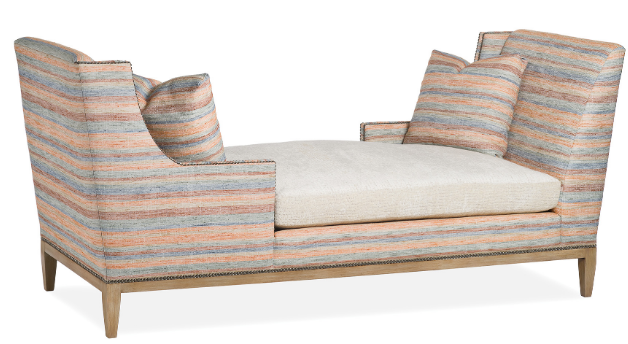 This Lexi Slipper Chair was photographed in Faded Stripe Spice and Shropshire Cream with Willow finish. Available in your choice of fabric and wood finish.Read More