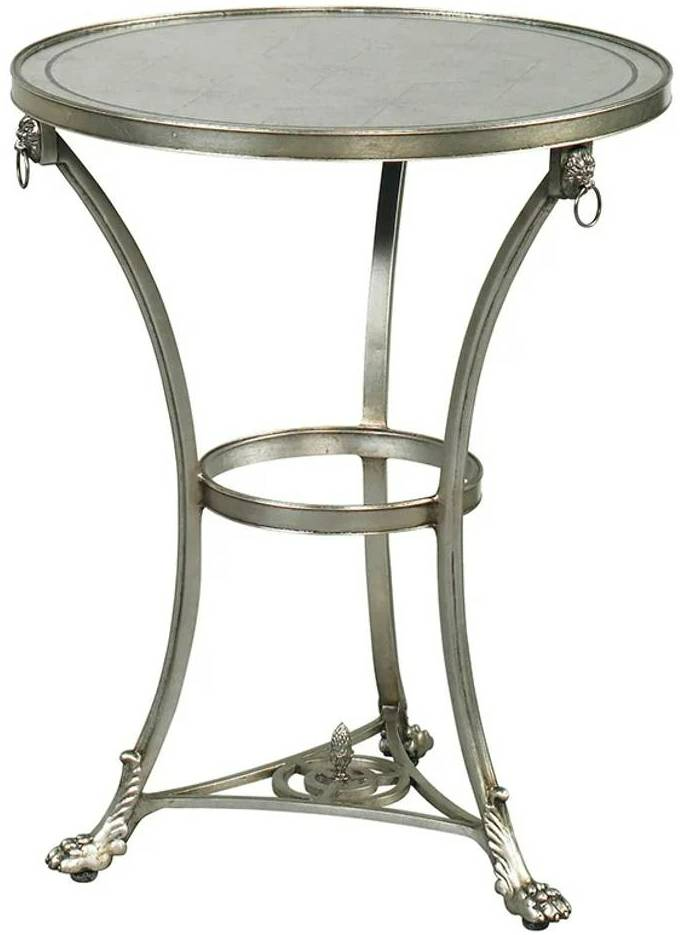 The Lillian August Café Joie Table is a neo-classical inspired piece featuring a sculptural iron base with engraved lion paw feet, finished in aged silver. Its hand-embellished églomisé mirrored top adds vintage elegance to any sophisticated interior.Read More