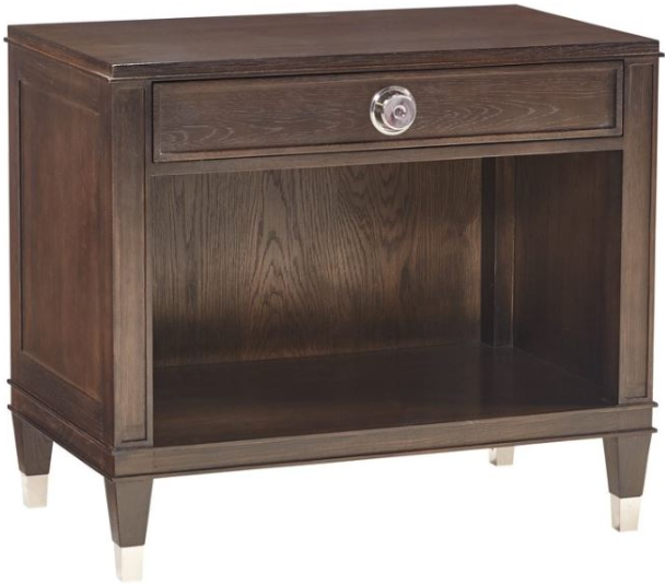 Petite yet substantial, the Hudson Bedside Console Cabinet offers hidden storage in the form of a top drawer, as well as additional space for accents with an open bottom shelf. Features polished nickel leg ferrules and hardware.Read More
