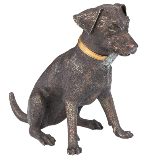 Whimsical sculpture of a labrador smoking a cigar