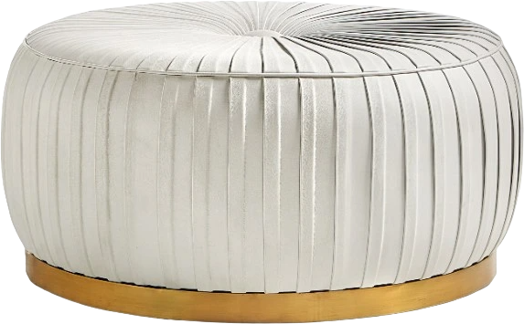 Elevate your living space with the Round Pleated Ottoman, featuring luxurious white leather and elegant brass trim. Its pleated design adds texture and sophistication, making it a stunning centerpiece or accent piece in any room.Read More