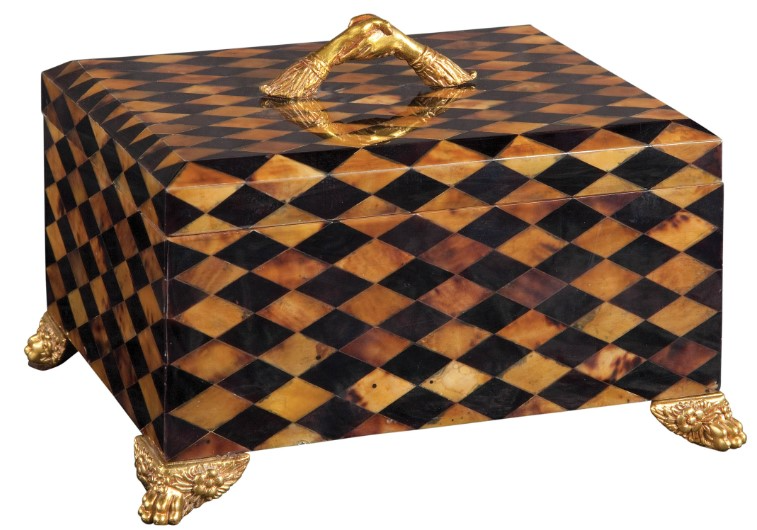 Enhance your decor with the Light and Dark Harlequin Penshell Box. Crafted with finely cast brass mounts, this exquisite piece combines light and dark tones for a captivating aesthetic that adds sophistication to any space.Read More