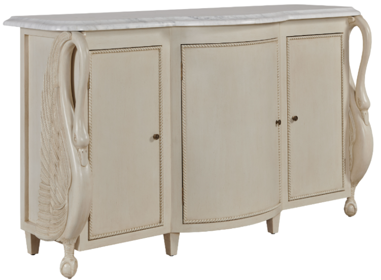 Mahogany credenza in painted white featuring swan carving details
