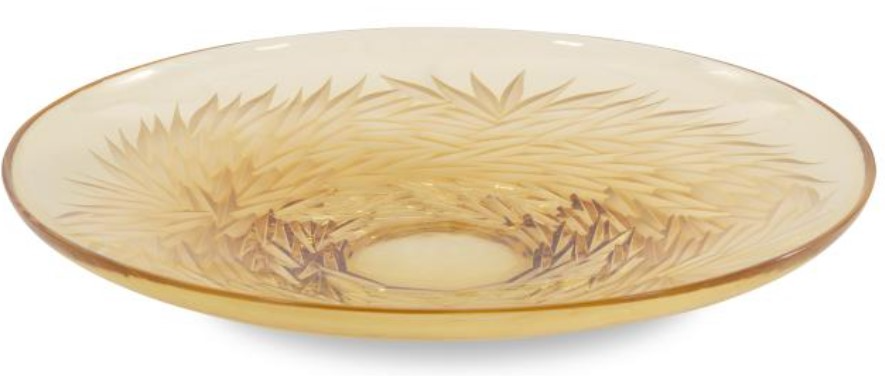 Crafted with precision, the Crystal Amber dish exudes elegance with its hand-engraved bevels, reminiscent of a bird's nest's intricate swirls. This exquisite piece adds a touch of natural beauty to any space.Read More