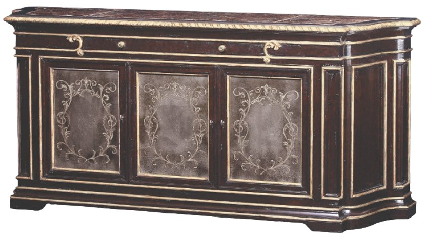 The Piazza San Marco Credenza exudes classic Italian charm with its wood construction and luxurious marble top. Featuring one drawer and three doors, it seamlessly blends practicality with elegance. Whether gracing your dining room or living space, this credenza adds a touch of sophistication and functionality to any interior.Read More