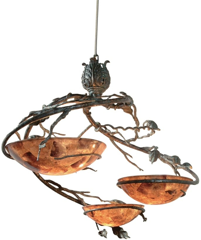 Bring the beauty of nature indoors and illuminate your space with the enchanting Radiant Chandelier. Crafted with a verdigris finished steel and patina brass, this chandelier boasts a captivating leaf and branch motif. Its penshell inlaid bowls add a touch of organic allure.Read More