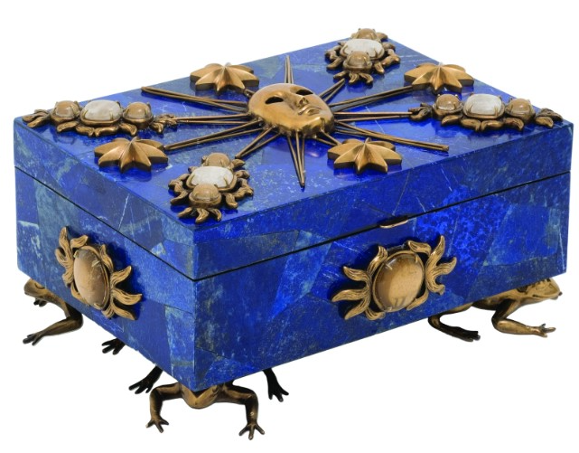The Roi Soleil Lapis Lazuli Inlaid Jeweled Box is a luxurious and exquisite accessory that exudes opulence and sophistication. Crafted by Maitland-Smith, a renowned name in luxury home decor and furnishings, this jeweled box seamlessly blends artistic design with exceptional craftsmanship.Read More
