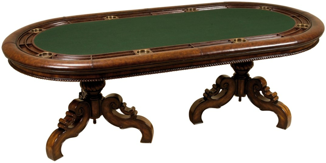 Step up your game night with the Texas Hold'Em Game Table. This stunning piece features a Dark Antique Lido finish that adds elegance to any space. With its green felt and leather top, it's perfect for hosting unforgettable poker nights. Add a touch of sophistication to your game room with this stylish and functional table.Read More