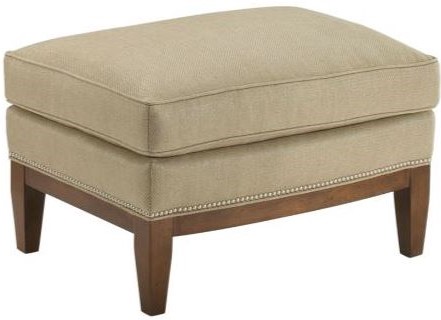 A Transitional ottoman, with a rectangular sewn cushion seat, on a wooden seat rail and square tapering legs.
