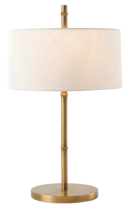 The Theodore Alexander Kesden satin brass table lamp delivers contemporary elegance with its compact design. A soft linen shade diffuses warm light, while the sculptural satin brass base adds a modern, organic touch—perfect for accent lighting in refined spaces with minimal footprint.Read More