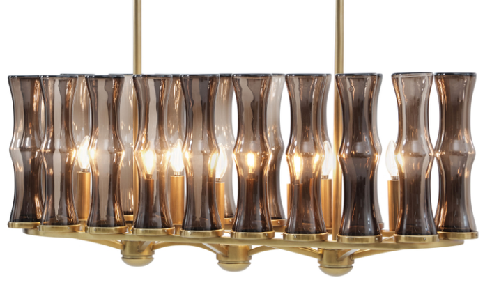 Theodore Alexander’s Preston Brass with Smoke Glass Ovale Chandelier features a stunning blend of brass and smoky glass in an elegant oval design. Its refined craftsmanship and ambient lighting add a touch of sophistication, making it a standout centerpiece for any luxurious interior.Read More