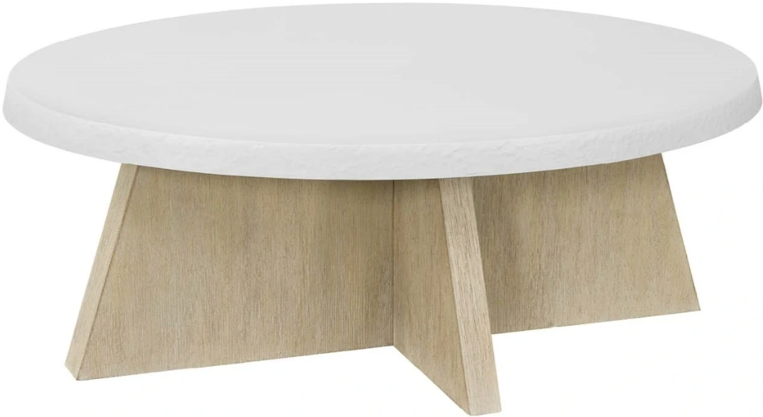 The dockside cocktail table showcases a white concrete oval top with a textured edge sitting atop a warm oak base. The use of natural materials creates a casual yet sophisticated centerpiece for your coastal living room.Read More