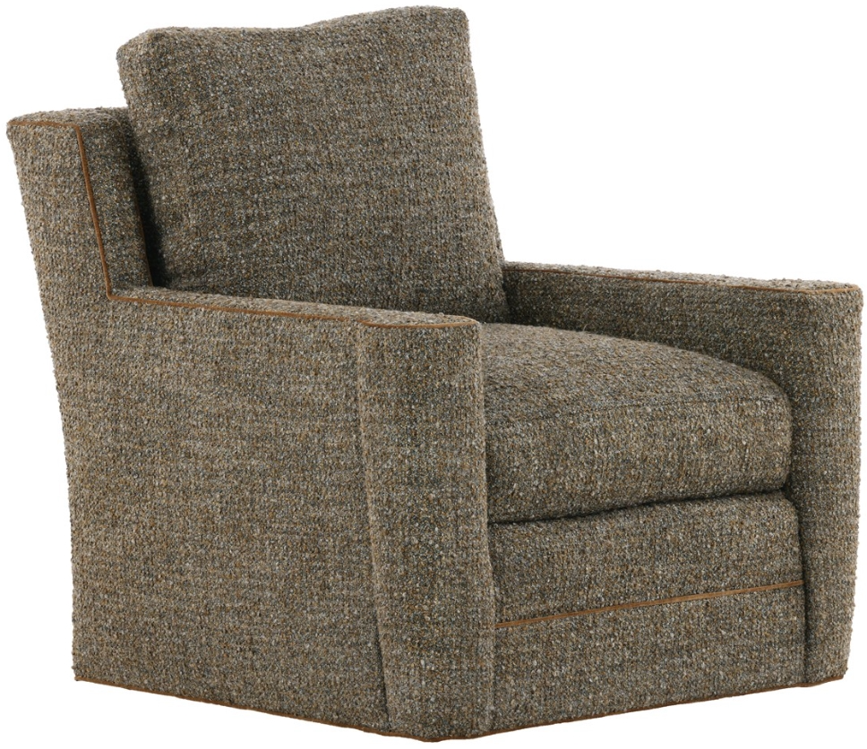 The Brookford base to floor swivel chair offers refined comfort with its border-french seam seat and back cushions, generously filled with feather lux for a plush feel. With customizable cushion fill options, optional nailhead trim, and versatile base choices, it blends tailored design with lasting comfort.Read More