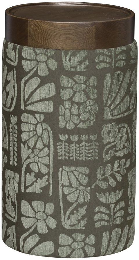 More is more when it comes to this charming cylinder-shaped upholstered table. Add it to any space for a dash of fun, function and fabric. Choose your favorite finish for its versatile wood top and you'll wonder how you ever lived without it.Read More