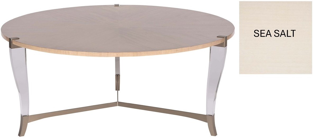A sleek and sophisticated round cocktail table from the Vanguard Perspective Collection, the Clarion cocktail table blends modern materials with classic craftsmanship. Featuring a Sea Salt wood finish, soft bronze metal, and acrylic accents, it’s designed to complement a variety of interior styles with elegance and versatility.Read More