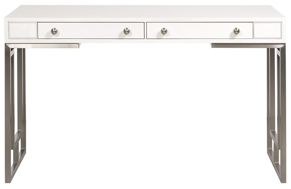 Shown in a casa blanca finish, the Bryson Desk is made with beech solids and veneers/maple solids. It features two drawers, a metal geometric base in satin brass or, brushed nickel.Read More