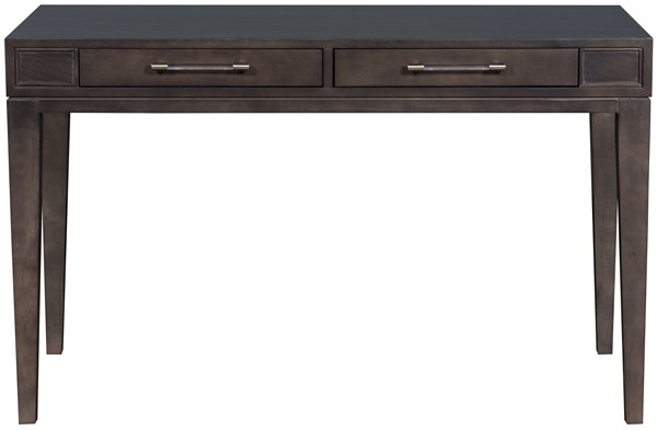 Shown in a film noir finish, the Bryson Desk is made with beech solids and veneers/maple solids. It features two drawers, a taper leg base, clean face molding, and brushed nickel horizontal pulls.Read More